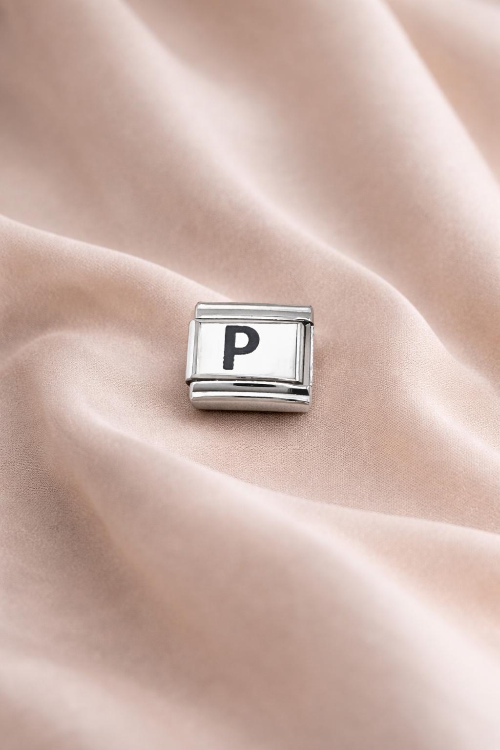 “P” Harf Charm – Çelik Bileklik Modülü, Kişiye Özel Harf Aksesuarı