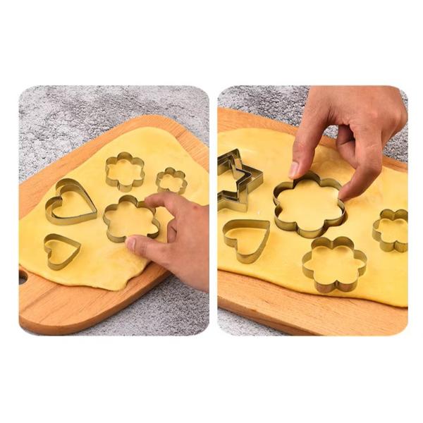 12 adet paslanmaz çelik kurabiye kalıbı seti, dayanıklı ve hijyenik yapısıyla mutfakta pratik kullanım sağlar. Kalpler, yıldızlar, çiçekler ve daireler gibi 4 farklı şekli bulunan bu set, her şeklin üç farklı boyutuyla toplam 12 parçadan oluşur. Yalnızca kurabiye hamuru için değil, aynı zamanda sebze, meyve, yumurta veya hamur işi sunumlarında da yaratıcı biçimlendirmeler yapmanıza imkân tanır. Paslanmaz çelik yapısı sayesinde uzun ömürlü kullanım sunar ve kolay temizlenir. Pürüzsüz kenarları sayesinde güvenli bir kullanım deneyimi sağlar. Evde, kafelerde veya pastanelerde dekoratif sunumlar yapmak isteyenler için ideal bir yardımcıdır.