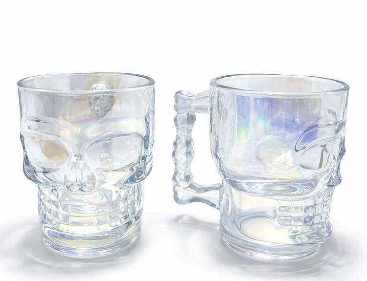 2 Adet Şeffaf Cam Kurukafa Kupa Bardak.