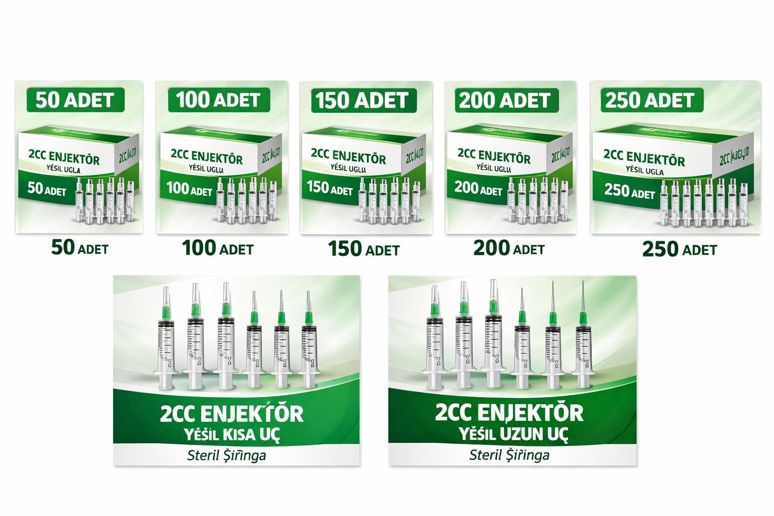 2cc enjektör, yeşil uçlu enjektör, kısa uç enjektör, uzun uç enjektör, steril şırınga 2 ml, tek kullanımlık enjektör, medikal enjektör, 2cc şırınga, 50 adet enjektör, 100 adet enjektör, 150 adet enjektör, 200 adet enjektör, 250 adet enjektör, yeşil uç şırınga, klinik enjektör ürünleri, sağlık sarf malzemeleri, medikal şırınga satın al