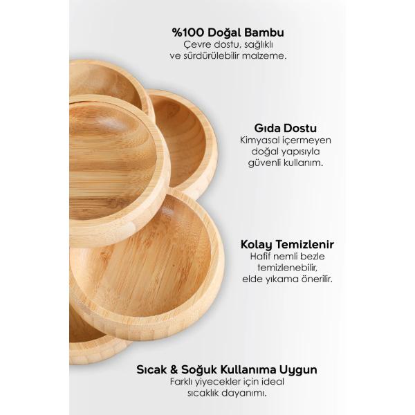 3'lü Çerezlik Seti, yuvarlak tasarımıyla şık ve pratik bir şekilde çerez, kuru yemiş ve atıştırmalıkları sunmanıza olanak tanır. Setin her bir çerezliği doğal ahşap malzemeden üretilmiş olup, dayanıklı ve çevre dostudur. 9x2x5 cm boyutu sayesinde her masada yer kaplamadan kullanılabilir. Doğal ahşap yapısı, modern ve minimalist dekorasyonlara uyum sağlar