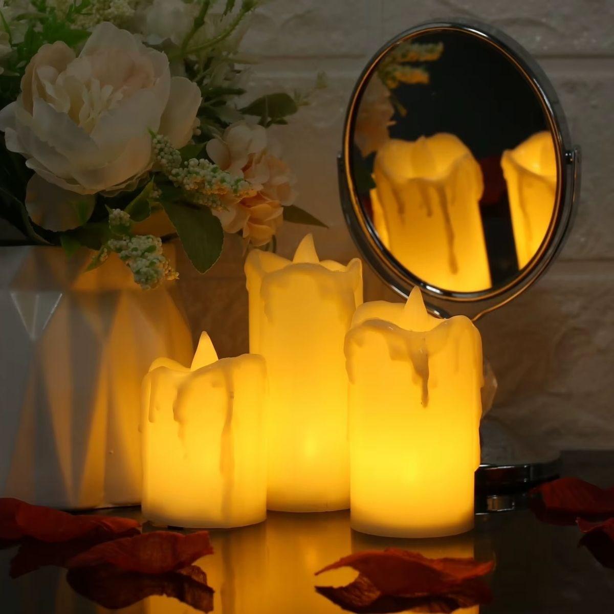 3’lü Pilli Dekoratif LED Mum Işıkları – Gerçek Alev Efektli