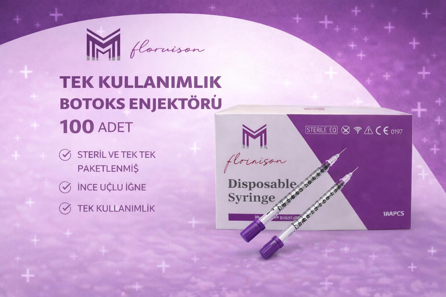 32G x 8MM 1 ML Tek Kullanımlık Hassas Uçlu Botoks Enjektörü 100 Adet 1 Kutu