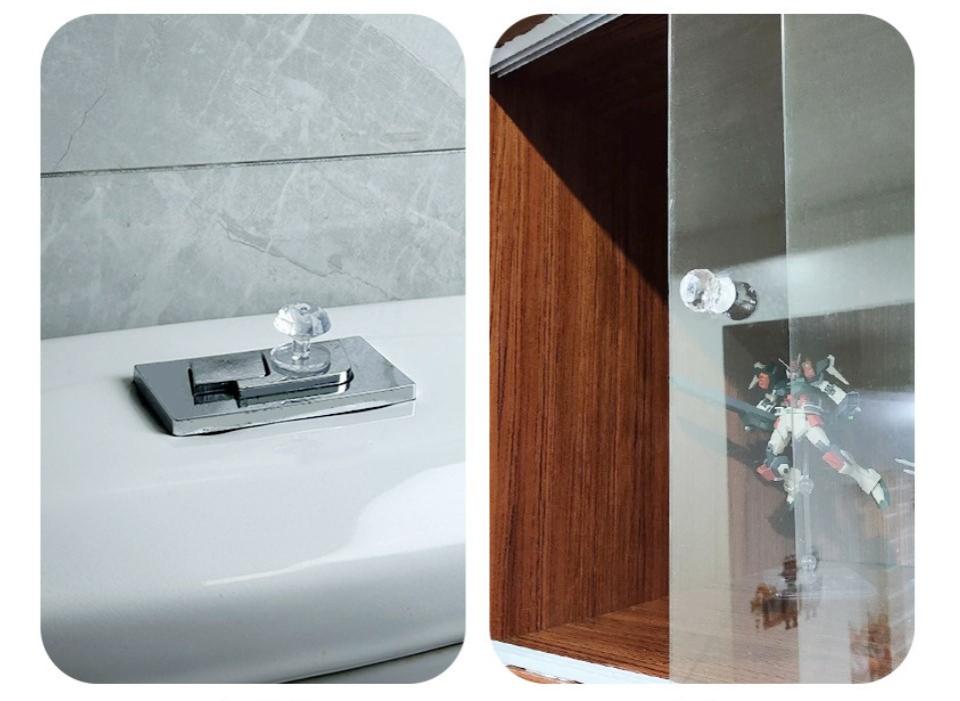 4 ADET KRİSTAL TASARIMLI ÇOK AMAÇLI YAPIŞKANLI TUTACAK BUTONÜrün Özellikleri4 Adet Kristal Tasarımlı Çok Amaçlı Yapışkanlı Tutacak Buton, evin her alanında hem estetik hem de pratik kullanım sunan modern bir yardımcı üründür. Elmas kesim kristal görünümü sayesinde banyolarda, dolaplarda, buzdolabı kapaklarında ve cam yüzeylerde dekoratif bir şıklık oluştururken aynı zamanda kolay tutuş sağlayarak konforlu bir kullanım deneyimi sunar. Tırnak dostu yapısıyla özellikle klozet sifonlarına basarken tırnak kırılmalarını önler ve hijyenik kullanım sağlayarak yüzeylere direkt temas etmeden işlem yapmanıza imkan tanır. Güçlü yapışkan bandı sayesinde montajı vidasızdır, matkap gerektirmez ve tüm düz yüzeylere saniyeler içinde kolayca uygulanır. Çekmece ve dolap kapaklarında kulp olarak kullanılabilir, buzdolabı ve bulaşık makinesi kapaklarında pratik tutacak görevi görür. Gömme rezervuar sifonlarında, klozet kapağı kaldırma işlemlerinde ve mutfak dolaplarında çok amaçlı kullanım sunan bu ürün, hem fonksiyonelliği hem de dekoratif görünümüyle yaşam alanlarınıza değer katar. Uygulama öncesi yüzeyin temiz ve kuru olması önerilir; yapıştırma sonrası maksimum tutuş için kısa bir süre bekletilmesi daha iyi performans sağlar. Boyutları 19mm x 20mm x 20mm şeklindedir ve tüm standart yüzeylerle uyumludur.Paket İçeriği4 adet kristal tasarımlı yapışkanlı tutacak buton.