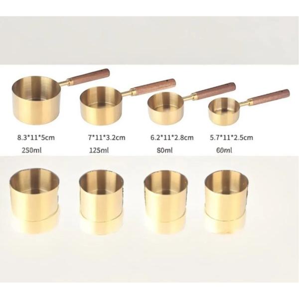 Bu 4'lü ahşap saplı ölçü kaşığı seti, mutfakta ölçü almak için ideal bir çözümdür. Metal kısmı şık altın rengindedir, ahşap sapları ise ergonomik olup rahat bir kullanım sağlar. Farklı boyutlarda 4 ölçü kaşığından oluşan bu set, her türlü yemek tarifinde doğru ölçüleri almanıza yardımcı olur. Estetik tasarımı, mutfakta şıklık yaratır. Her bir kaşık, dayanıklı malzemelerle üretilmiştir ve uzun süreli kullanım için uygundur.