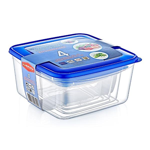 Mutfakta pratiklik ve düzen isteyenler için tasarlanan 4'lü Kare Saklama Kabı Seti, farklı boyutlardaki kaplarıyla çok yönlü bir saklama kabı seti çözümü sunar. Set içerisinde dört adet kare formda kap bulunur ve gıdalarınızı düzenli şekilde muhafaza etmenize yardımcı olur. Şeffaf gövde tasarımı sayesinde içerik kolayca görülebilir ve dolap içi düzen daha kontrollü hale gelir. Sızdırmaz mavi kapakları, hava geçişini minimuma indirerek yiyeceklerin tazeliğini korumaya destek olur. Dayanıklı ve BPA içermeyen plastik malzemeden üretilmiş olup gıda ile temasa uygundur. Buzdolabında, mutfak dolaplarında ya da pikniklerde güvenle kullanılabilen kare saklama kabı tasarımı, alanı verimli kullanmanızı sağlar. İç içe geçebilen yapısı sayesinde yer tasarrufu sunar ve yemek, meyve, sebze, salata, kahvaltılık veya kuru gıdalar için hijyenik bir gıda saklama çözümü oluşturur.