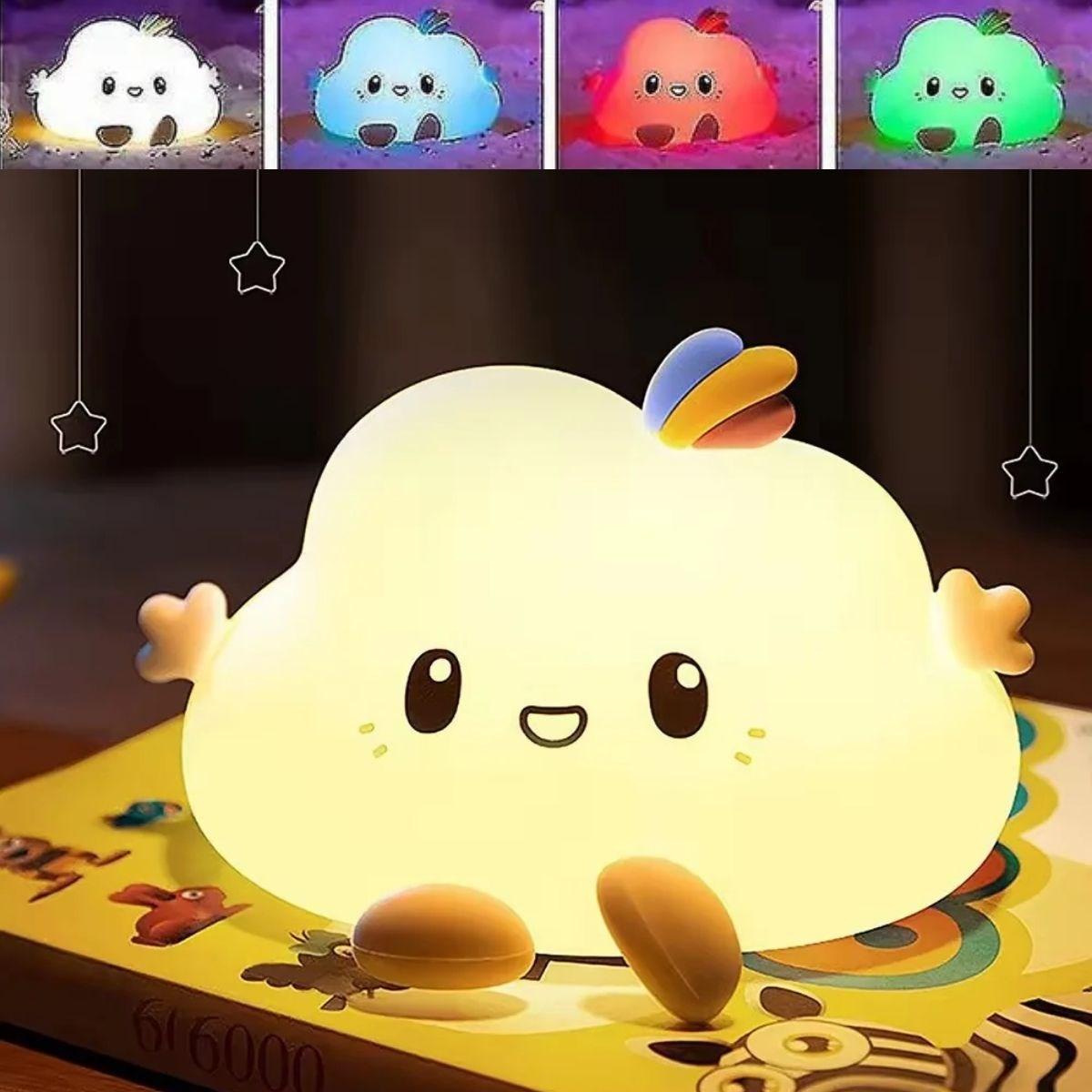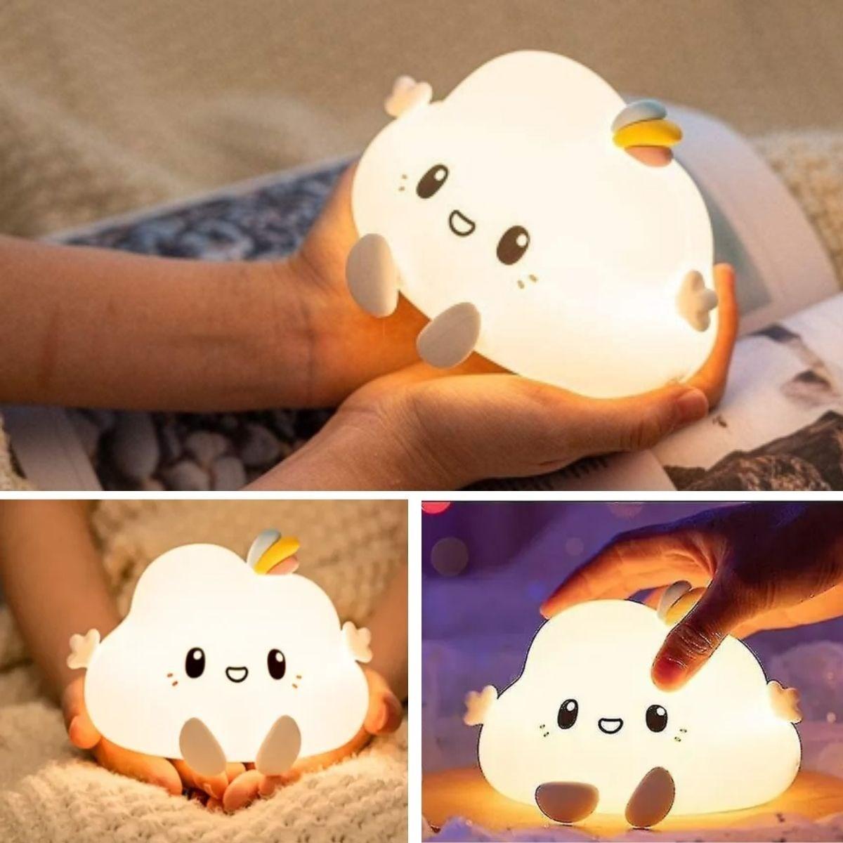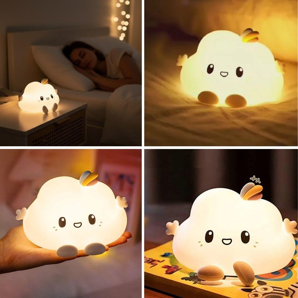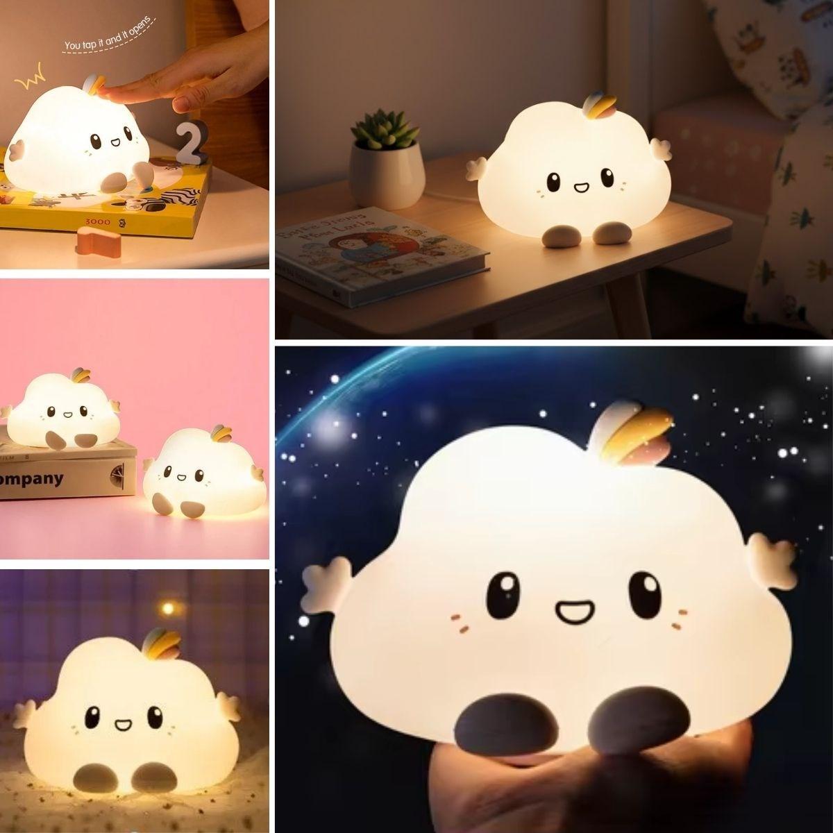 Bulut Figürlü Pofuduk LED Gece Lambası – Yumuşak Dokulu Masaüstü Aydınlatma, Çocuk Odası ve Dekoratif Şarjlı Ortam Işığı