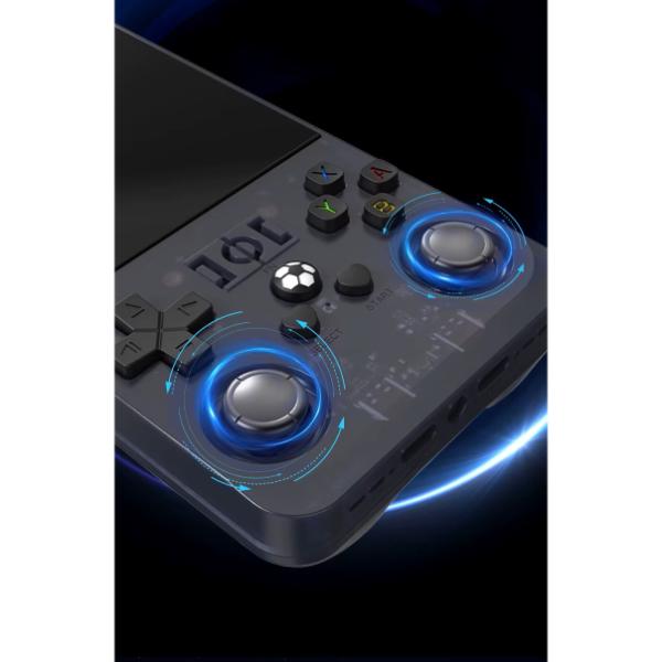 Gelişmiş çift hall joystick sistemi sayesinde yüksek hassasiyetli kontrol ve ergonomik tutuş sunar, uzun oyun seanslarında bile konfor sağlar.4000mAh bataryasıyla 6 saate kadar kesintisiz oyun oynama imkânı tanır ve Type-C bağlantı noktasıyla hızlı şarj desteği sunar. Ayrıca, 1GB RAM + 8GB EMMC dahili depolama ve 128GB TF kart desteği sayesinde geniş oyun kütüphanesi depolama kapasitesine sahiptir.Standart 3.5mm kulaklık girişi, OTG veri portu ve 5W güç tüketimiyle enerji verimliliği sağlayan bu cihaz, taşınabilir oyun konsolları arasında güçlü bir alternatif oluşturur.