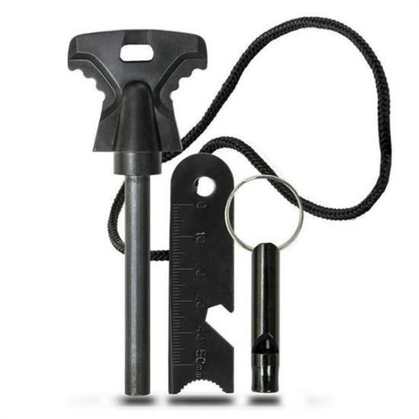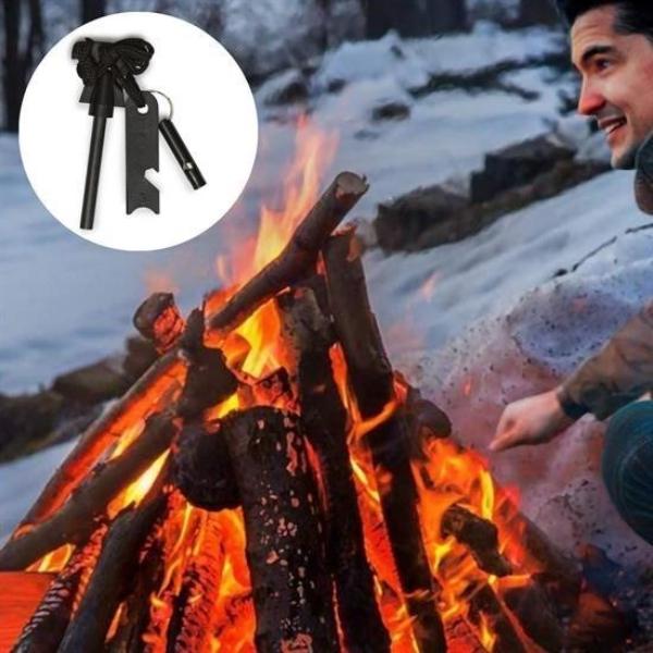 Acil Durum Magnezyum Çakmaktaşı Hayatta Kalma Kiti, kamp, doğa yürüyüşü, keşif ve acil durumlar için güvenilir bir ateş başlatma çözümü sunar. Nemli hava veya düşük sıcaklıklarda dahi çalışabilen bu magnezyum çakmaktaşı, yüksek sıcaklıklı kıvılcım oluşturarak odun, dal ve kağıt gibi yanıcı materyalleri kolayca tutuşturmanıza yardımcı olur. Ergonomik tasarımı sayesinde elde sağlam bir tutuş sağlar ve boyut olarak son derece taşınabilirdir. Magnezyum çubuğu suya, neme, aside ve alkali korozyona dayanıklı yapısıyla uzun ömürlü kullanım sunar. Paslanmaz çelik sıyırıcı üzerinde cetvel ve şişe açacağı bulunur, bu da ürünü çok amaçlı bir açık hava aracı haline getirir. Çakmaktaşı binlerce kez kullanılabilir ve acil durum düdüğü ile birlikte gelmesi güvenlik açısından ekstra avantaj sağlar. Ürün 4 x 11 x 2 cm boyutlarındadır ve açık hava etkinliklerinde ateş yakmanız gereken her an için hızlı ve etkili bir çözüm sunar.