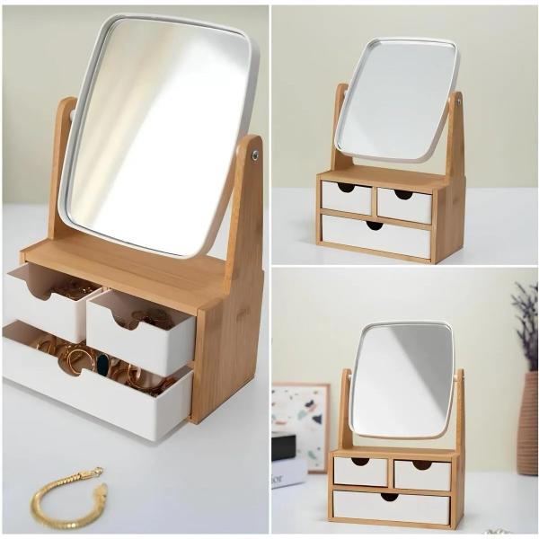 1 Adet Ahşap 3 Çekmeceli Ayna