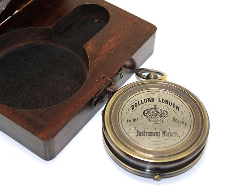 1 Adet Ahşap Kutulu Üzeri Desenli Pirinç Pusula