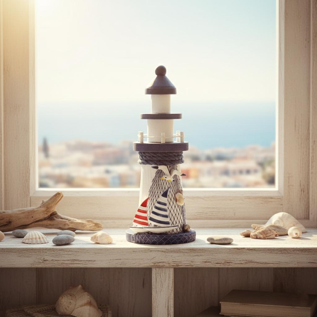 Deniz esintisini ve marin ruhunu mekanlara taşıyan bu şık dekoratif obje için hazırladığım içerik aşağıdadır:Ahşap Marin Deniz Feneri Model 5Ürün İçeriğiAhşap Marin Deniz Feneri Model 5, deniz tutkusunu ve sahil kasabalarının huzurunu yaşam alanlarınıza taşıyan estetik bir dekorasyon parçasıdır. Mavi ve beyazın ferahlatıcı uyumuyla tasarlanan bu deniz feneri, el işçiliği detaylarıyla öne çıkar. Marin temalı dekorasyonların vazgeçilmez bir tamamlayıcısı olan bu model, bulunduğu her köşeye dinginlik ve şıklık katar.Ürün ÖzellikleriÖzellikAçıklamaModelModel 5TemaMarin / Deniz KonseptiMateryalYüksek Kaliteli Doğal AhşapRenkMavi - BeyazİşçilikEl İşçiliği ile Detaylandırılmış TasarımKullanım AlanıRaf, Masa, Vitrin, Yazlık Ev ve OfisStilAkdeniz Esintili, Rustik ve ModernPaket İçeriği1 Adet Ahşap Marin Deniz Feneri Model 5