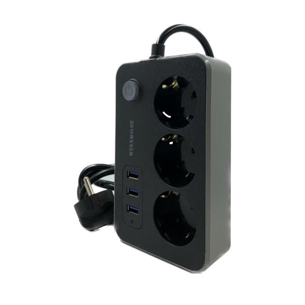 1 Adet Akım Korumalı 3 Prizli 3 USB Girişli Uzatma Kablosu