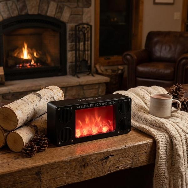 1 Adet Alev Şömine Efektli Bluetooth Hoparlör