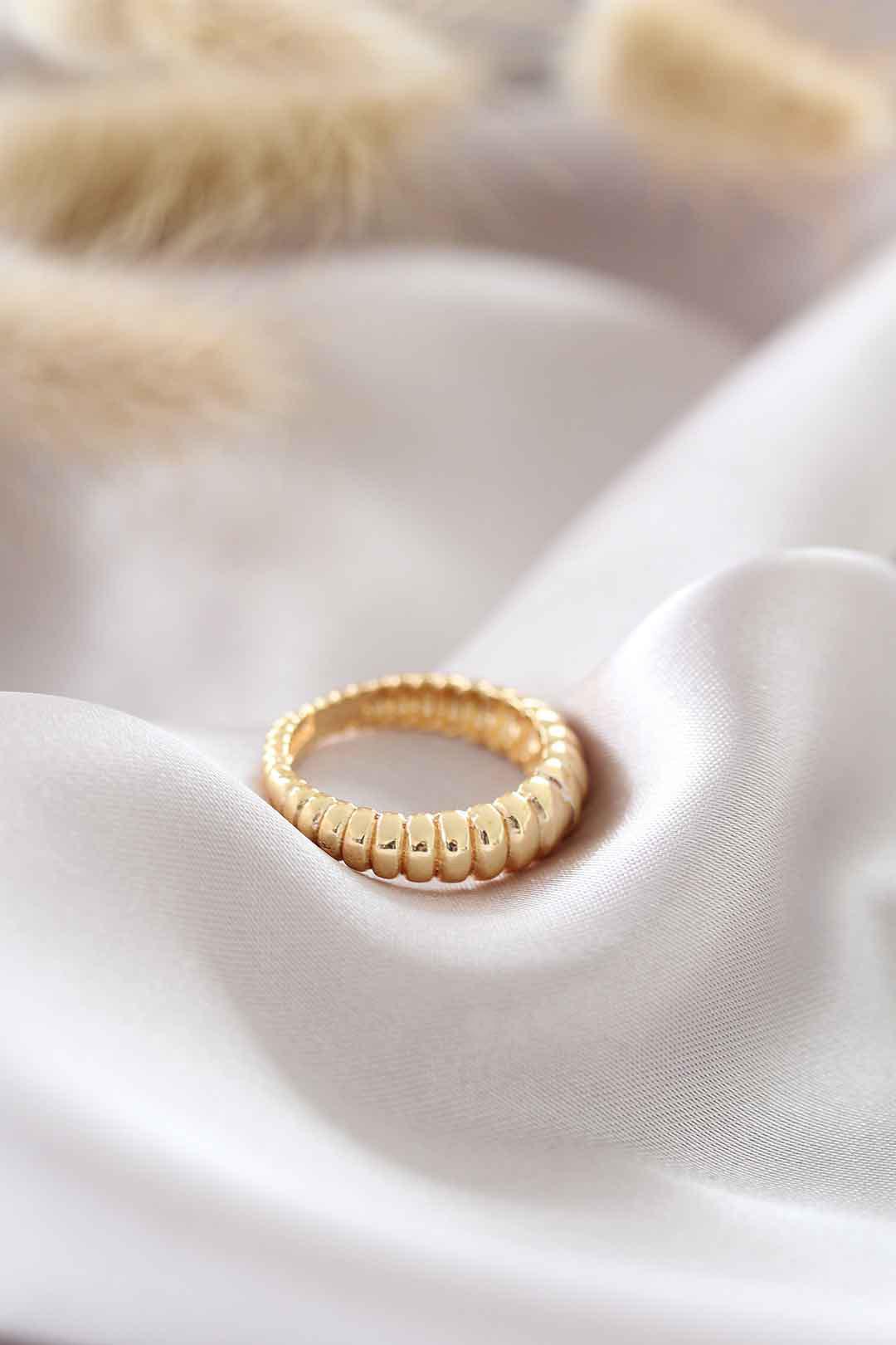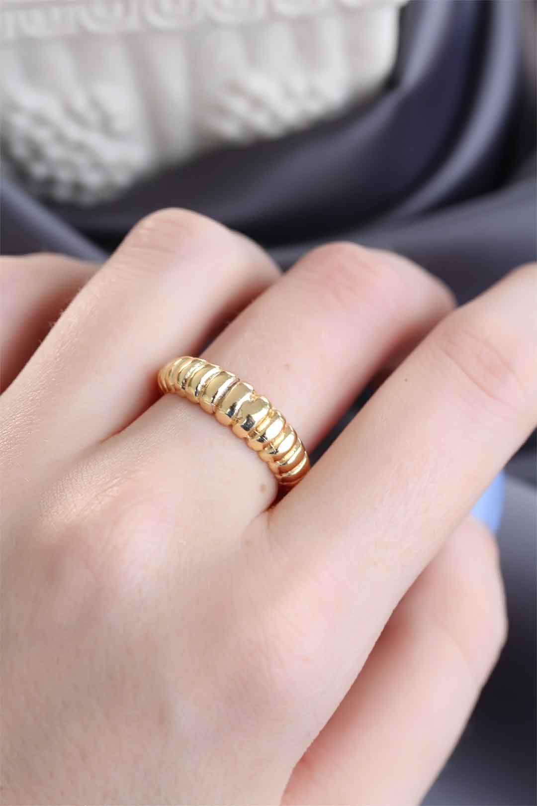 Şıklığı Altın Renk Ayarlamalı Burgu Kadın Yüzük ile tamamlayın.- Arkasından sıkıştırmalı model olduğu için basit bir şekilde parmak boyunuza göre ayarlayabiliyorsunuz.