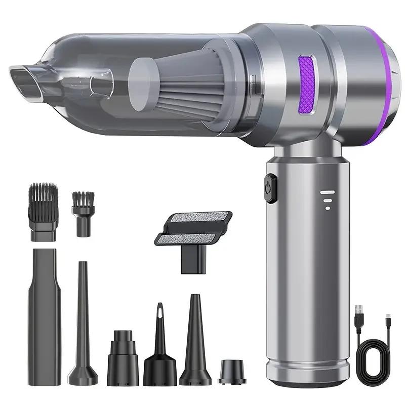 Araba Vakum Temizleyici, 16000PA Yüksek Güçlü Mini Elde Taşınabilir Şarj Edilebilir Kablosuz Hava Üfleme Cihazı, Ev ve Araba İçin Taşınabilir Kompresörlü Hava Püskürtücü (Gümüş Mor),PCMOS