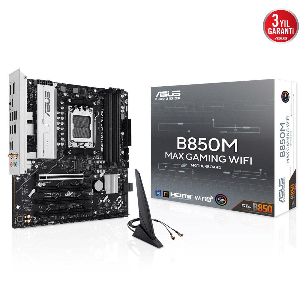 ASUS B850M MAX GAMING WIFI 8000MHz DDR5 Soket AM5 M.2 HDMI DP mATX Anakart