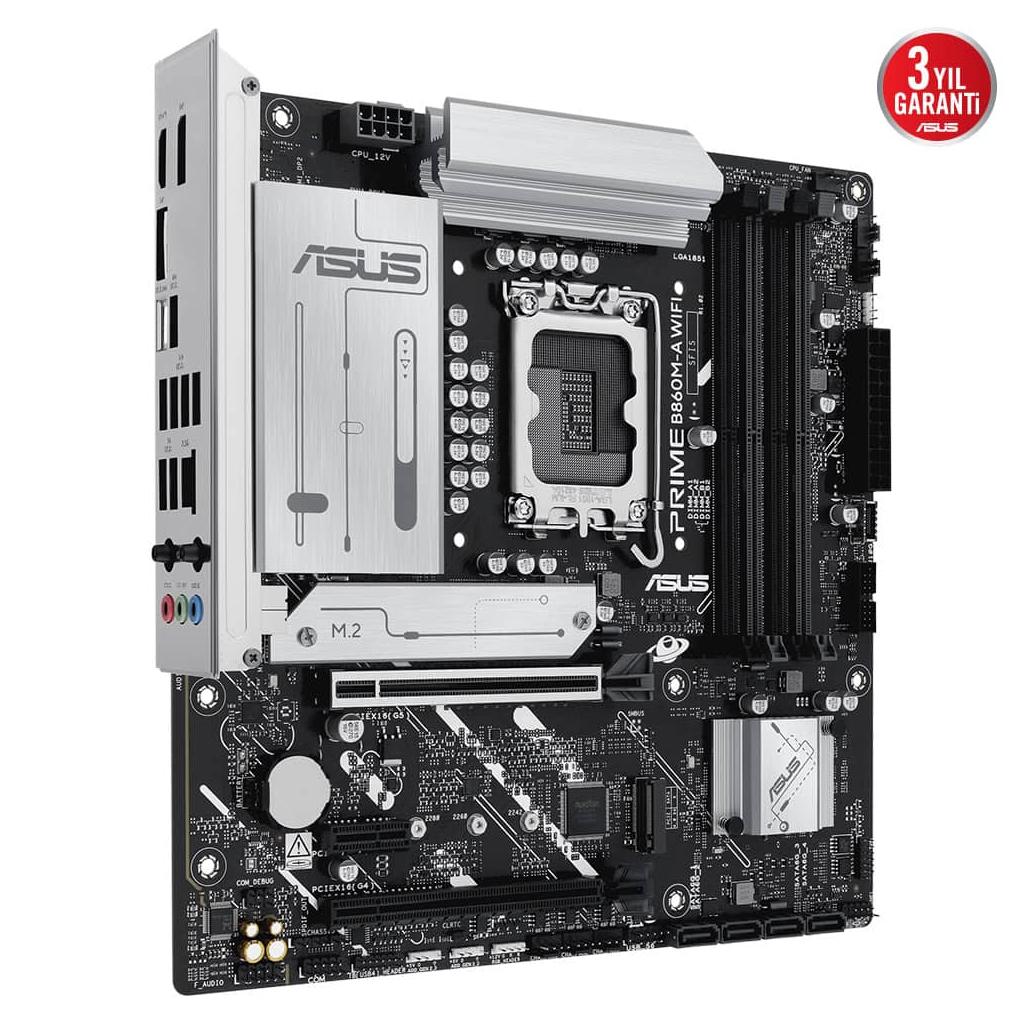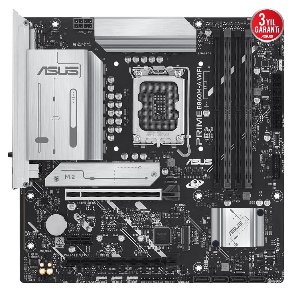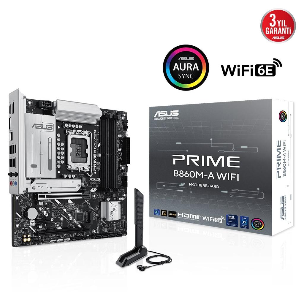 ASUS PRIME B860M-A WI-FI, 4xDDR5 2x M.2, HDMI, 2xDP, Wİ-Fİ 6E, Bluetooth v5.3, Type-C, Intel Core Ultra CPU(Seri 2), LGA1851 Soket