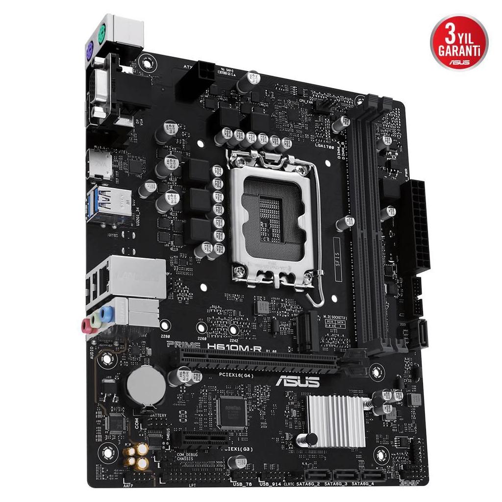 Intel® H610 (LGA 1700) micro-ATX DDR5 anakart, PCIe 4.0, M.2 yuvası, Realtek 1 Gb Ethernet, DisplayPort, HDMI™, VGA, USB 3.2 Gen 1 portları, SATA 6 Gbps , COM başlığı, LPT başlığı, TPM başlığı
