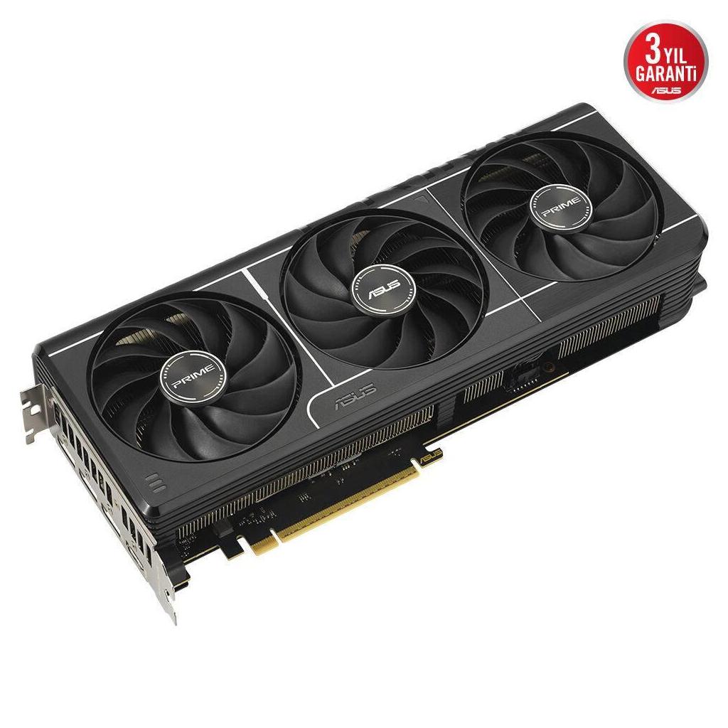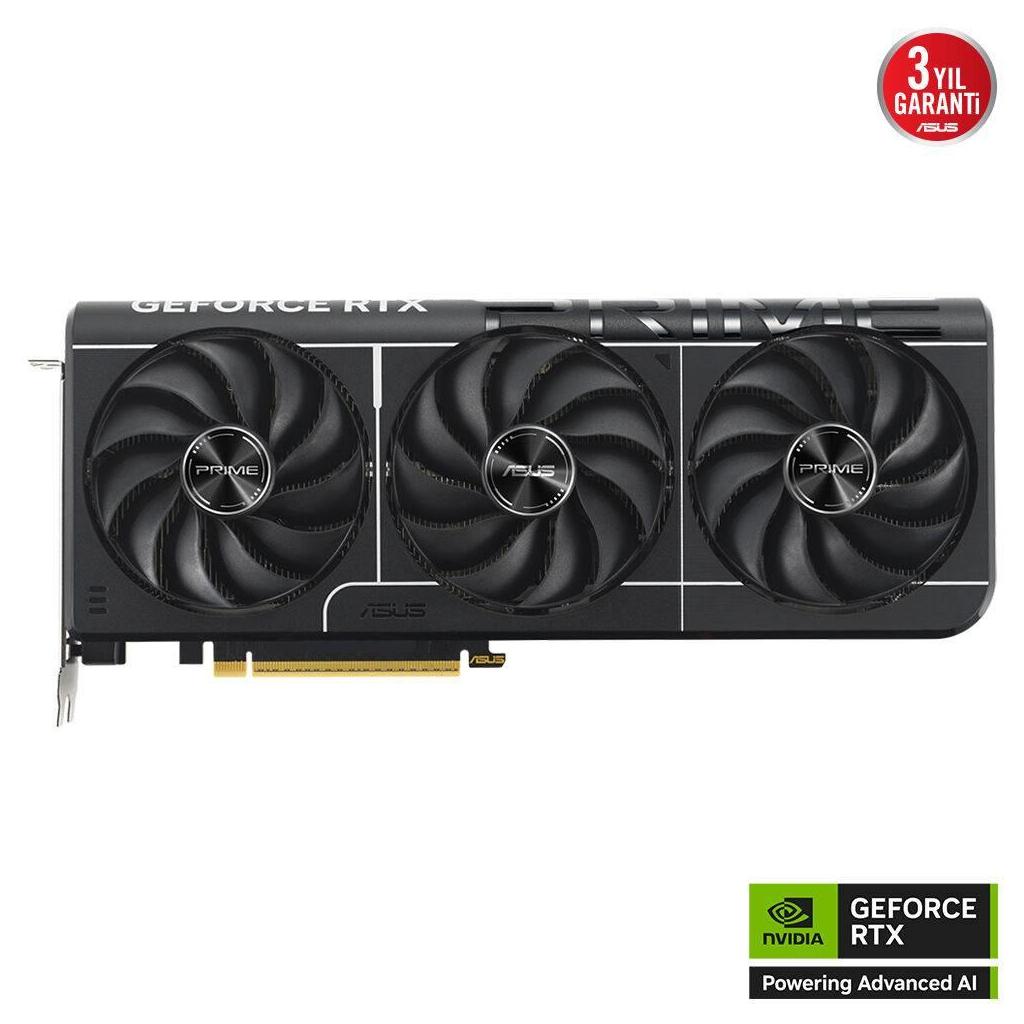 Prime GeForce RTX 5080, üç adet eksen teknolojili fanın ekran kartının yan havalandırmasından en iyi şekilde faydalanması ve en uygun termal performans sunması için özenle planlanmış koruma, soğutma bloğu ve ısı borusu düzeniyle 2,5 yuva yer kaplayan tasarıma sahip.