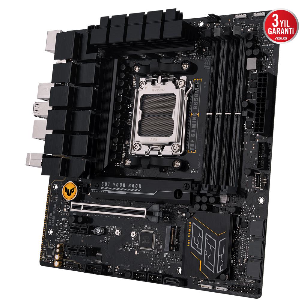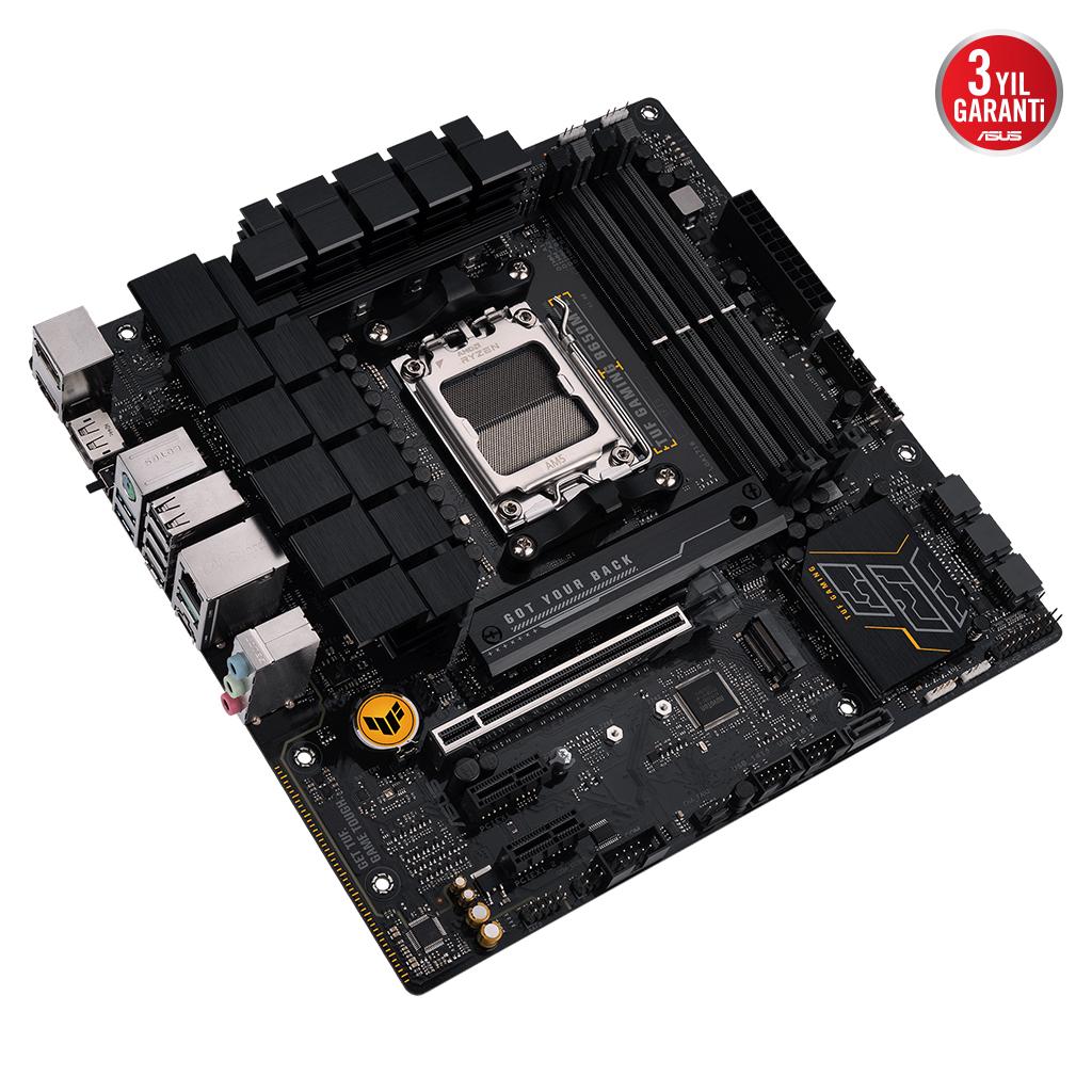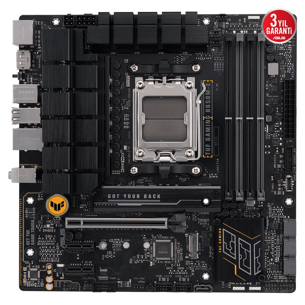 ASUS TUF GAMING B650M-E, en yeni AMD Ryzen 7000 serisi işlemcilerin en önemli unsurlarını oyunlara yönelik özellikler ve kanıtlanmış dayanıklılıkla bir araya getiriyor. Askeri sınıf bileşenler, gelişmiş güç çözümü ve kapsamlı soğutma sistemiyle donatılan bu anakart, oyun maratonları için kararlı ve sağlam performans ile beklentilerin ötesine geçiyor. TUF GAMING anakartlar, diğerlerinin başarısız olabileceği koşullarla başa çıkabileceklerini garantilemek için zorlu testlerden geçiriliyor. Bu model estetik bakımdan, TUF GAMING serisini tanımlayan güvenilirliği ve kararlılığı yansıtmak için sağlam siyah rengi ve geometrik tasarım öğelerini bir araya getiriyor.
