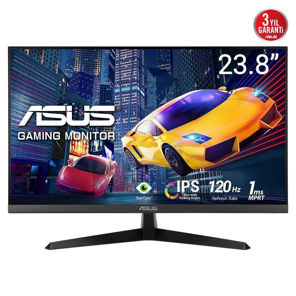 ASUS VY249HGR Eye Care Oyuncu Monitörü – 23,8 inç FHD (1920 x 1080), IPS, 120Hz(OC), SmoothMotion, 1ms (MPRT), Adaptive Sync, Eye Care Plus teknolojisi, Mavi Işık Filtresi, Flicker Free, antibakteriyal kaplama