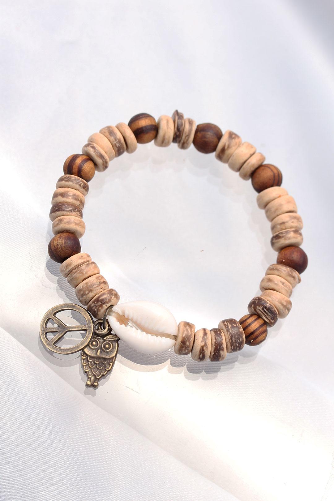 Baykuş Aksesuarlı Coconut ve Bambu Erkek Bileklik
