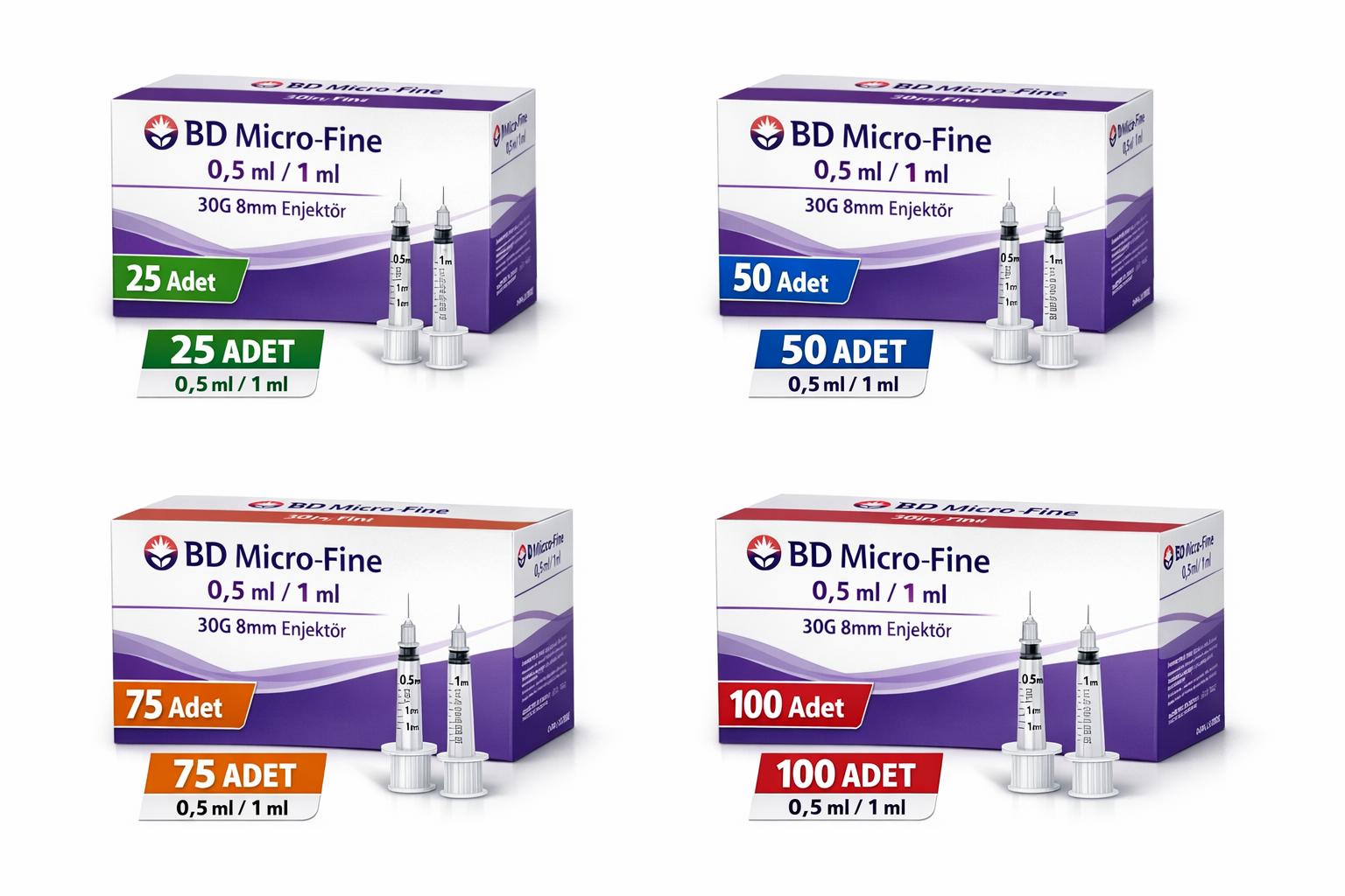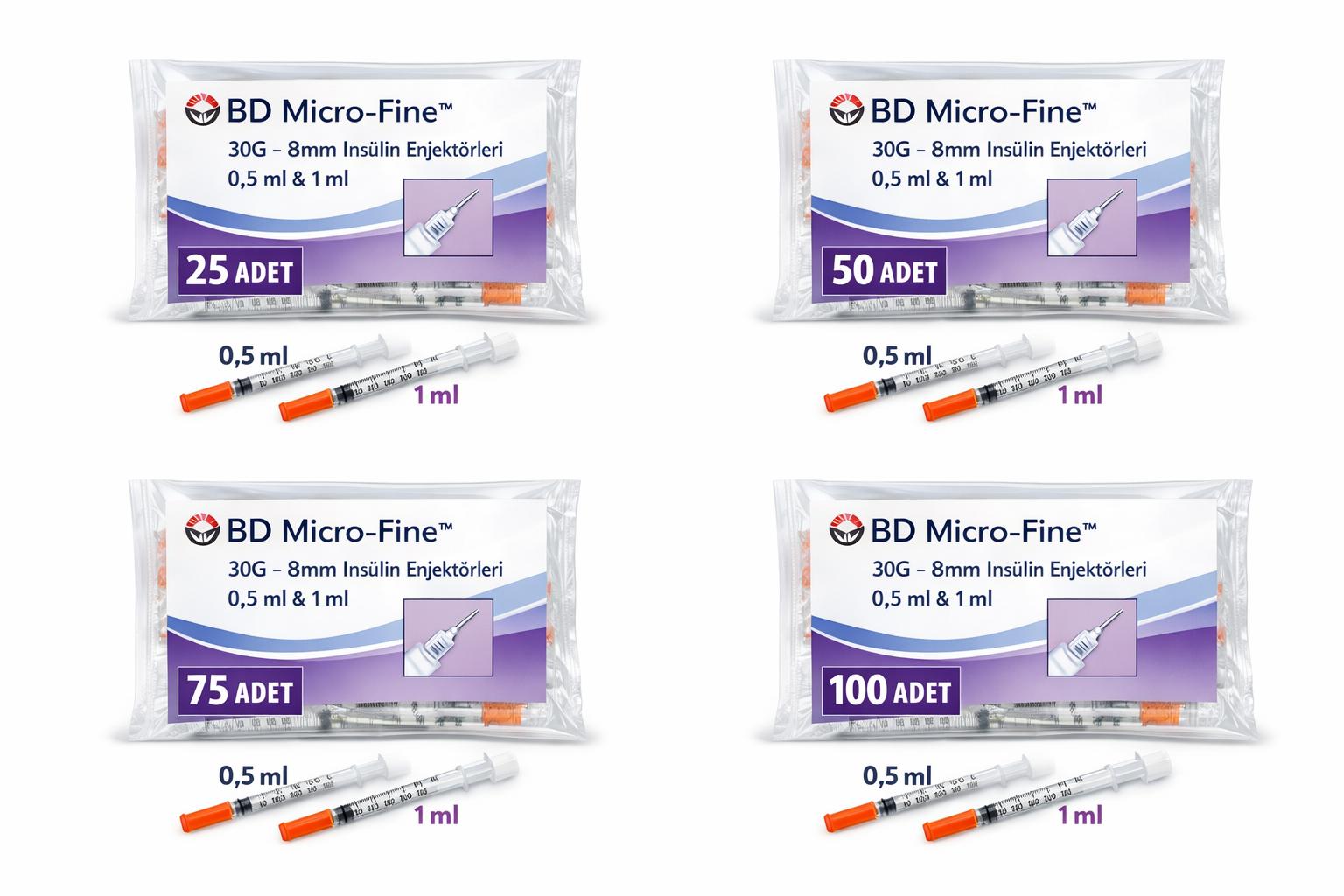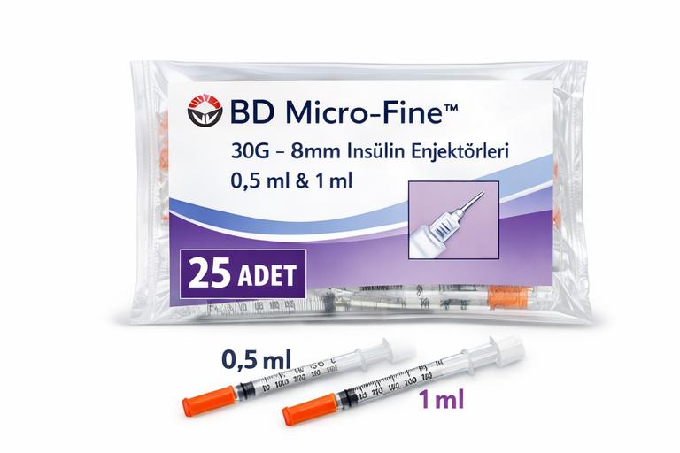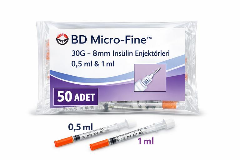 BD Micro Fine 30G enjektör, 8mm insülin enjektörü, 0,5 ml insülin enjektörü, 1 ml insülin enjektörü, BD insülin şırıngası, 30G ince uç enjektör, steril tek kullanımlık enjektör, 25 adet insülin enjektörü, 50 adet enjektör, 75 adet enjektör, 100 adet enjektör, diyabet enjektör ürünleri, insülin iğnesi BD