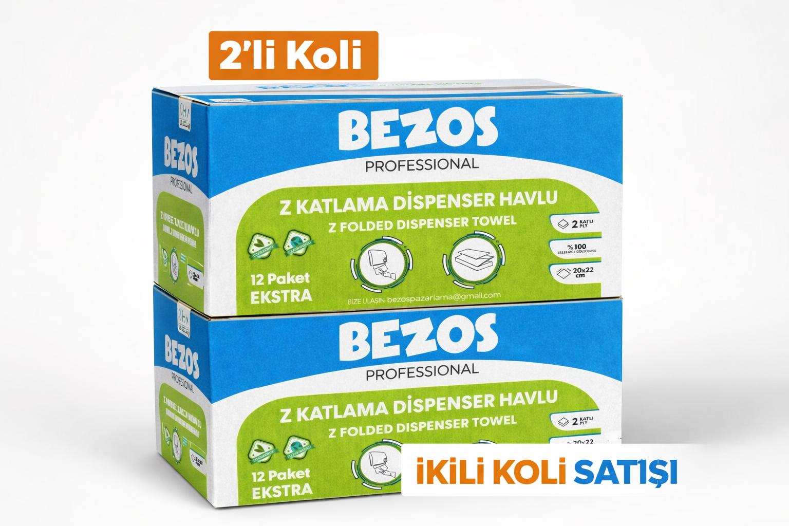 Bezos Z Katlamalı Dispenser Havlu 2 Katlı 20x22 cm %100 Selüloz 2 Koli Avantaj Paket