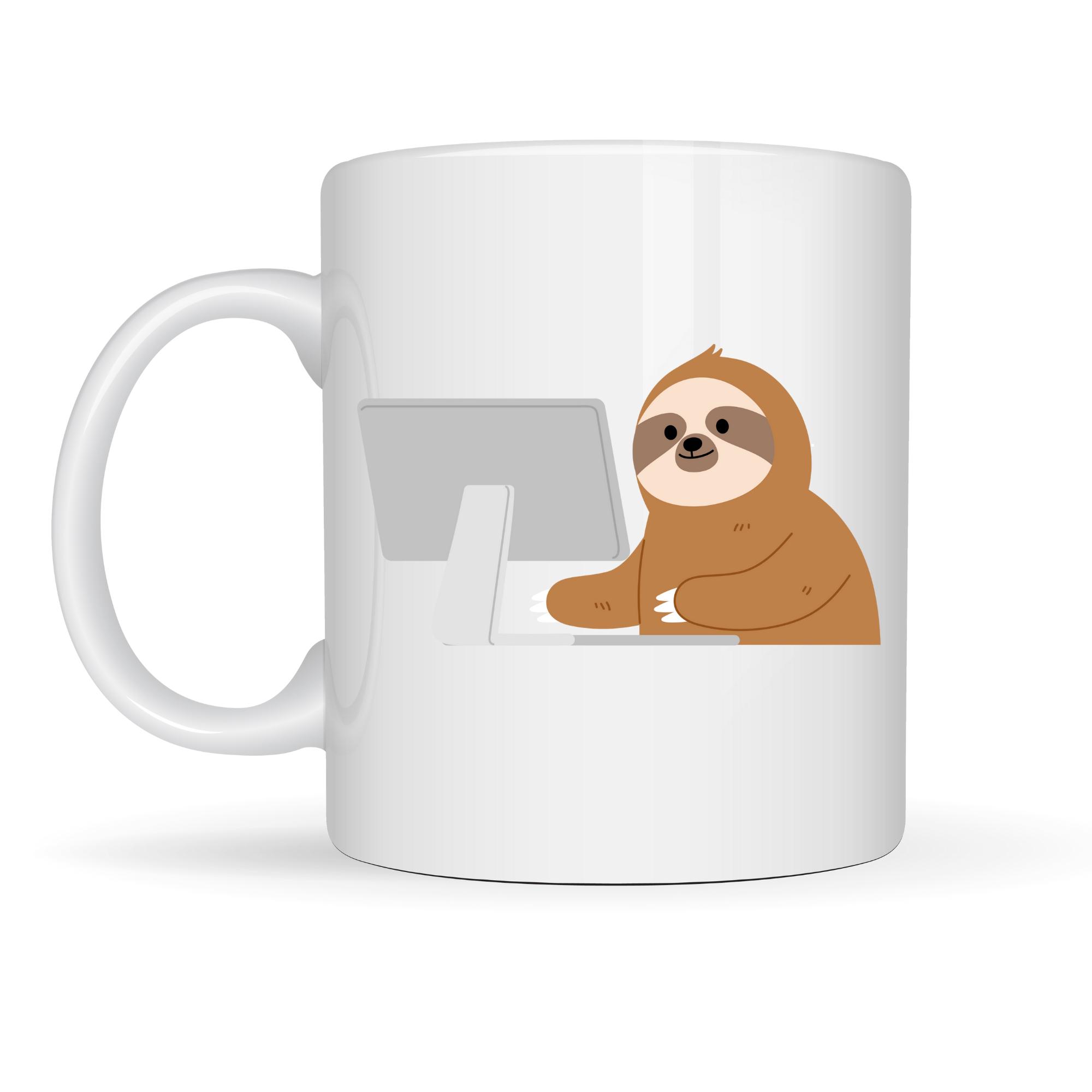 Bu sevimli bilgisayar başında çalışan tembel hayvan desenli porselen kupa, tam da modern hayatın ruhunu yansıtıyor.