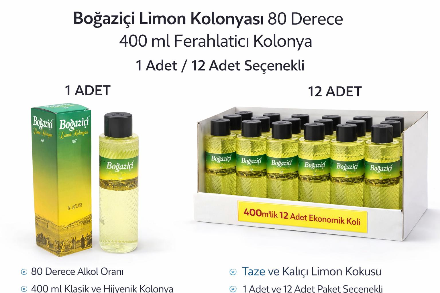 boğaziçi limon kolonyası, 80 derece kolonya, 400 ml kolonya, limon kolonyası 80 derece, ferahlatıcı kolonya, klasik limon kolonyası, hijyenik kolonya, 12 li kolonya, toptan kolonya, ekonomik kolonya, misafir kolonyası, el temizleme kolonyası, boğaziçi kolonya fiyatı, limon esanslı kolonya