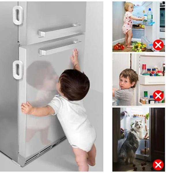 Sağlam ABS plastik malzemeden üretilmiştir ve uzun ömürlü kullanım sunar. Kapak açıldığında otomatik kilit sistemi devreye girer ve güvenliği sağlar.Buzdolaplarının yanı sıra mutfak dolapları, çekmeceler, derin dondurucular, çamaşır makineleri veya ilaç dolapları gibi alanlarda da kullanılabilir. Şık beyaz tasarımı sayesinde ev dekorasyonuna uyum sağlar ve pratik bir güvenlik çözümü sunar.
