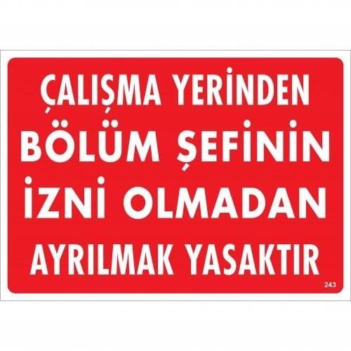 Çalışma Yerinden Bölüm Şefinin İzni Olmadan Ayrılmak Yasaktır Uyarı Levhası 25x35 KOD:239. Ürünlerimiz sıfır ve yeni ürünlerdir. Nilavm garantisinde özenle kargolanmaktadır. Tüketici hakem heyeti kurallarına göre iade işlemleri gerçekleşmektedir.
