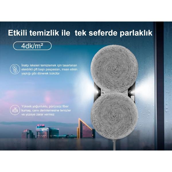 Cam Silme Robotu, pencereleri elle temizleme zahmetini ortadan kaldıran gelişmiş ve tamamen otomatik bir temizlik robotudur. Sağ-sol, sol-sağ ve yukarı-aşağı olmak üzere 3 farklı çalışma moduna sahiptir ve dar alanlara kolayca uyum sağlayarak cam yüzeylerde kusursuz temizlik performansı sunar. Vakum teknolojisi sayesinde yüzeye güvenli şekilde tutunur, camları silerken aynı anda temizleme ve parlatma işlemlerini gerçekleştirir. Geniş yüzeylerde olduğu kadar balkon camları, yüksek pencereler ve zor erişilen alanlarda da etkili çalışır. İçerisinden çıkan güvenlik halatı ile yüksek camlarda ekstra güvenlik sağlar. Şarjlı yapısı, özel temizleme bezleri ve sprey şişesiyle birlikte hijyenik ve pratik bir kullanım sunar. Ev, ofis ve mağaza vitrinlerinde cam temizliğini kolaylaştıran güçlü ve modern bir çözümdür.