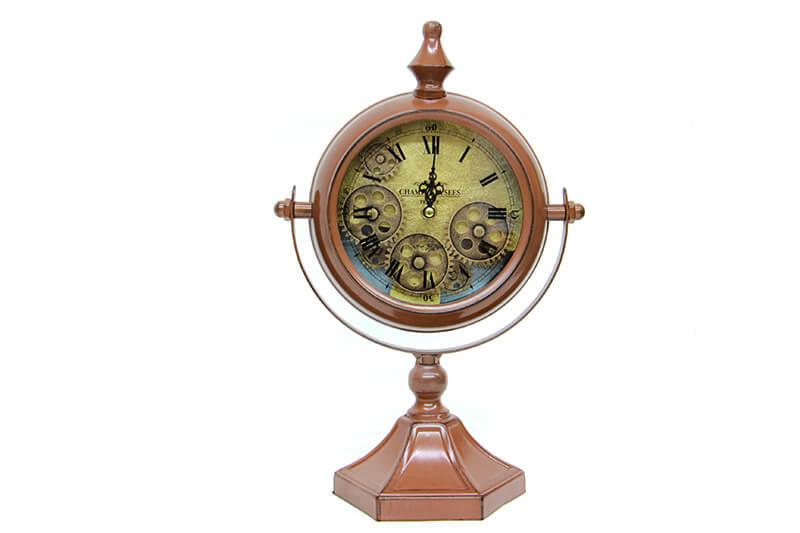 Çarklı Masa SaatiÜrün ÖzellikleriMasa Saati Roma Rakamlı Köstek modelidir.Tamamı metal malzemeden üretilmiştir.İç bölümünde ki çarklar hareket etmektedir.Akar mekanizma kullanılmıştır, sessizdir.3 adet pil ile çalışır.Ürün Ebatları Çap : 25 cm Genişlik : 12 cm Yükseklik : 47 cmAğırlık : 1,10 kg
