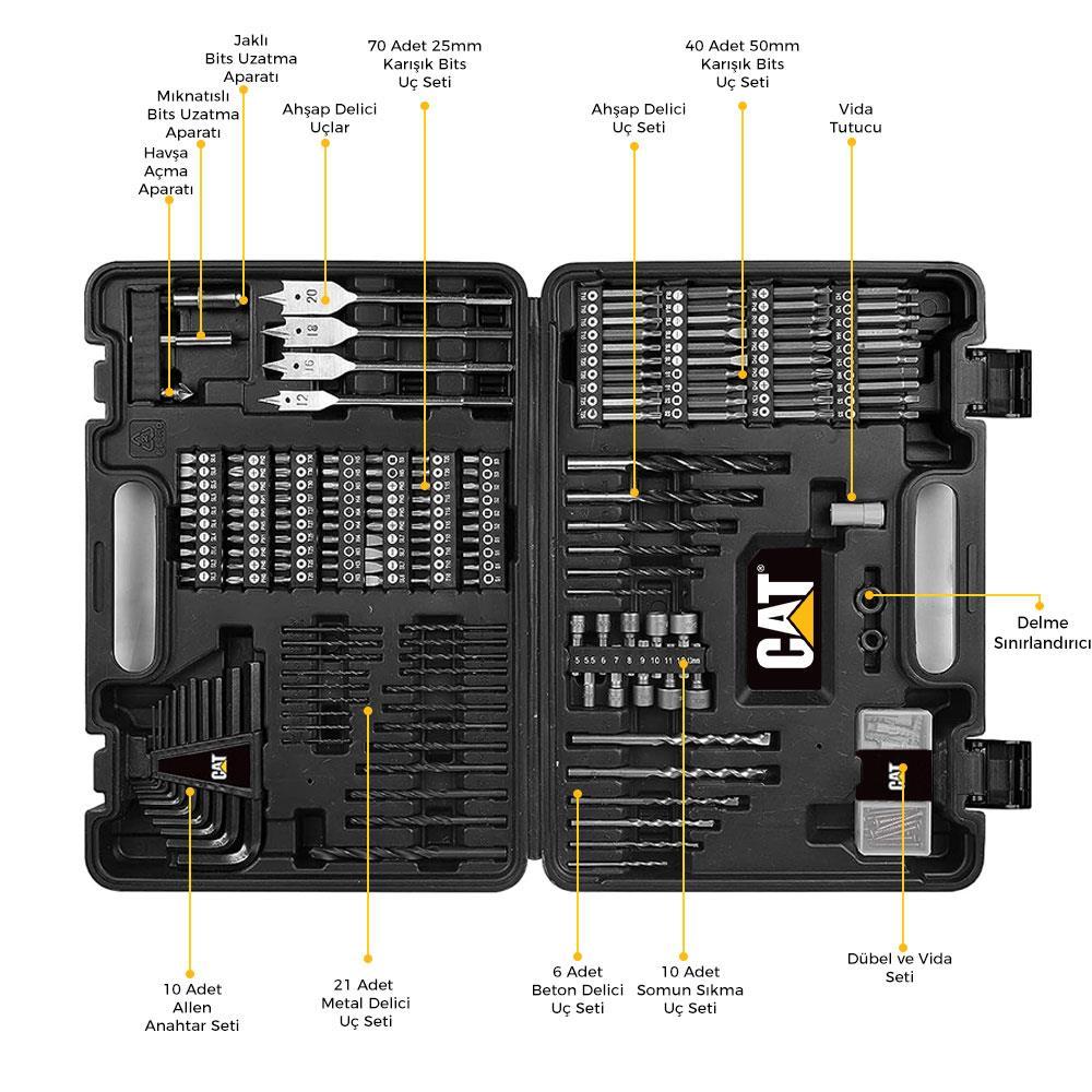 ·         CAT DA01903 201 Parça Delme/Vidalama/Allen Universal Matkap Ucu