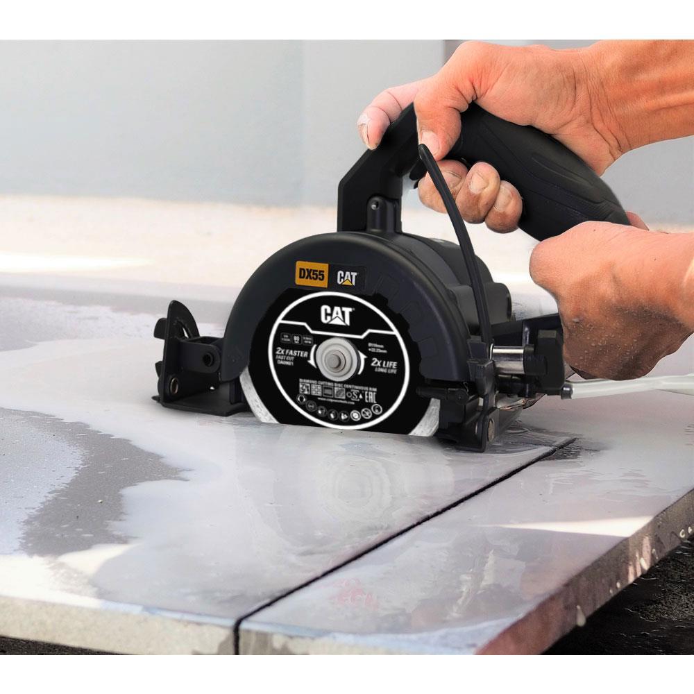 • 110mm disk ve 20-22,23mm göbek çapı ile CAT DX55 sulu seramik kesme makinası veya tüm marka ve model avuç taşlama makinaları ile kullanıma uygundur.