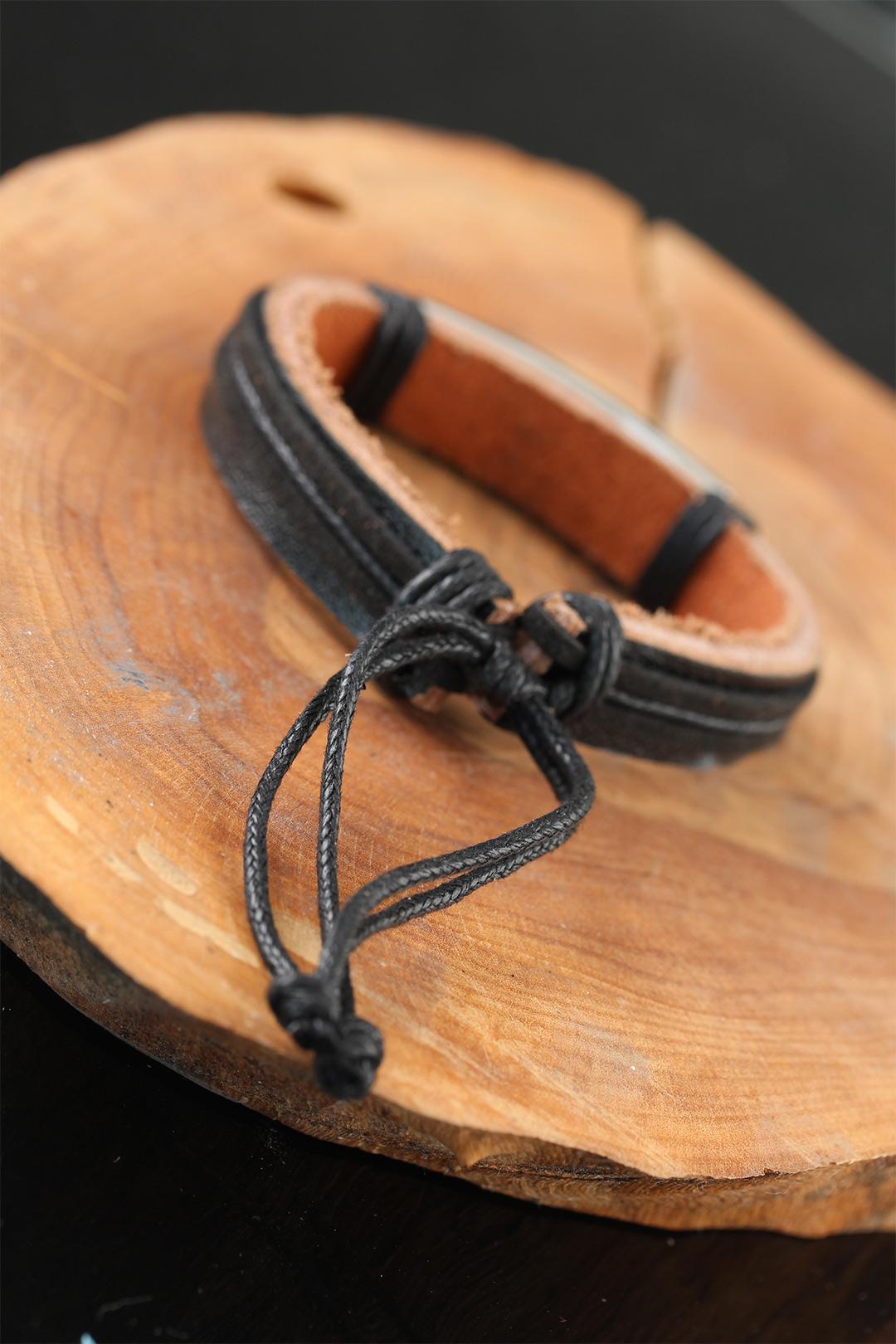 Güncel şıklığı Çelik Aksesuarlı Siyah Renk Deri Erkek Bileklik ile yakalayın.