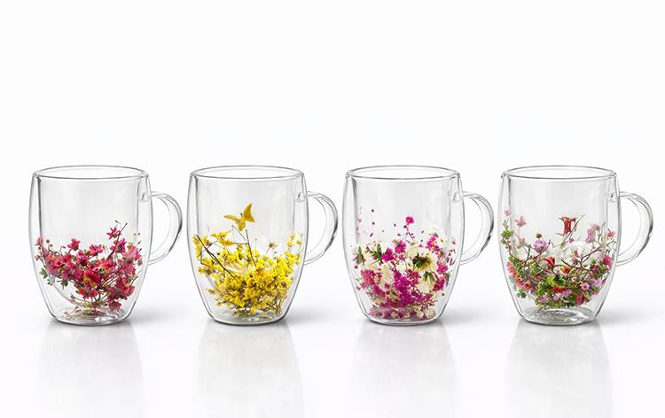 ÇİFT CAMLI ÇİÇEKLİ BOROSİLİKAT KUPA BARDAK