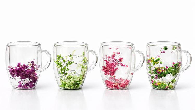 ÇİFT CAMLI ÇİÇEKLİ BOROSİLİKAT KUPA BARDAK - MODEL 2