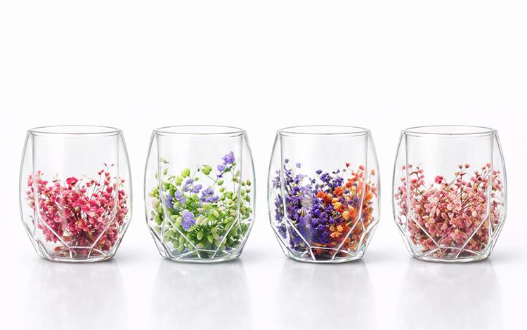 ÇİFT CAMLI ÇİÇEKLİ KÖŞELİ BARDAK