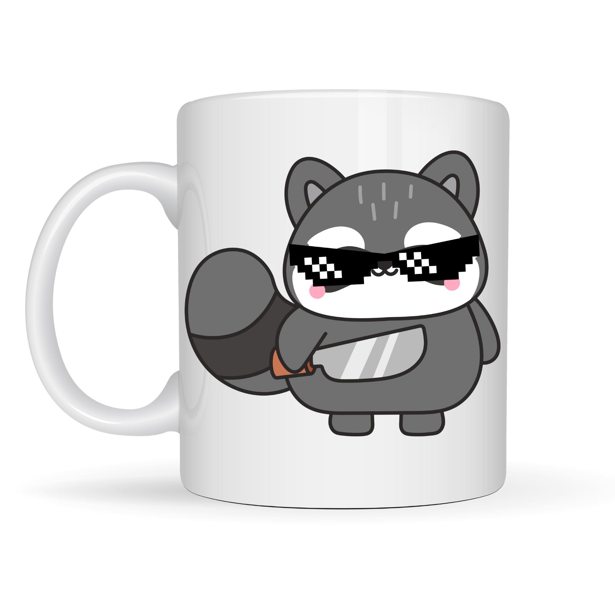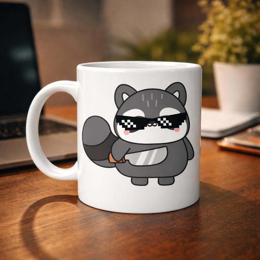 Bu özel tasarımlı porselen kupa üzerinde yer alan güneş gözlüklü sevimli rakun, kendinden emin duruşu ve eğlenceli ifadesiyle masanıza enerji katıyor.