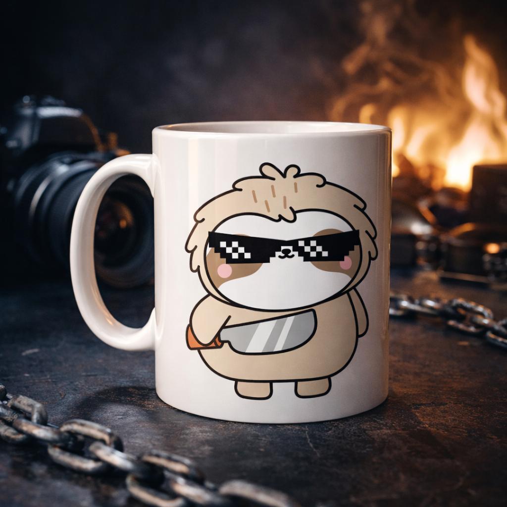 Bu özel tasarımlı porselen kupada yer alan güneş gözlüklü tembel hayvan, rahat tavrı ve esprili duruşuyla gününe keyif katıyor.