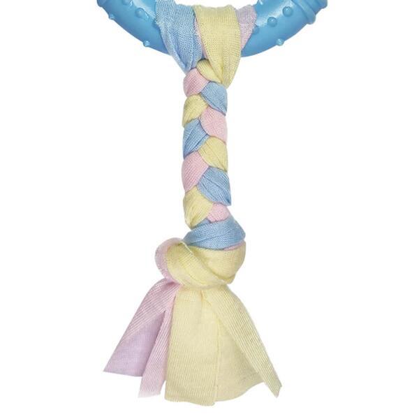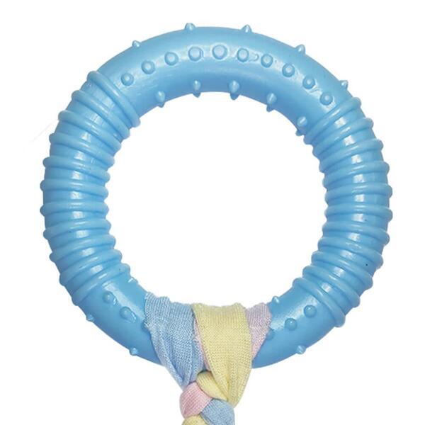 Dayanıklı Köpek Diş Kaşıyıcı ve Çiğneme Oyuncağı, köpeklerin doğal çiğneme ve oyun ihtiyaçlarını karşılamak üzere tasarlanmış güvenli ve eğlenceli bir oyuncaktır. Sağlam ve esnek malzemeden üretilen halkalı yapısı, diş kaşıma dönemindeki yavru köpekler için ideal bir rahatlama sağlar. Üzerindeki kabartmalı yüzeyler diş ve diş etlerini nazikçe masaj yaparak ağız sağlığını destekler. Renkli örgü kumaş tutucu kısmı köpeğin dikkatini çeker ve interaktif çekme-çekiştirme oyunları için mükemmeldir. Ev içi ve dış mekân kullanımına uygun olan bu oyuncak, köpeklerin enerjilerini doğru kullanmalarına yardımcı olurken aynı zamanda stres azaltıcı bir oyun deneyimi sunar. Küçük ve orta ırklar için ideal bir oyun arkadaşıdır.