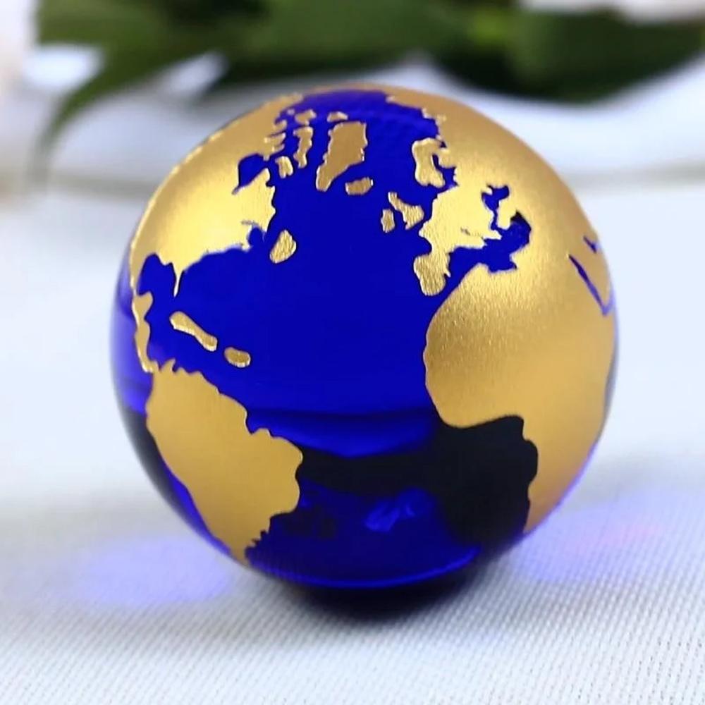 Renkli cam dünya küresi, altındaki gold renkli stand ile şık ve lüks bir görüntü sunmaktadır. Mavi ve altın renklerinin zarif birleşimi ile dikkat çeker. Hem ofis masalarınızda hem de ev dekorasyonunda kullanabileceğiniz bu dekoratif dünya, estetik bir dokunuş ekler. Kaliteli cam malzemeden üretilen küre, şık metal standı ile daha da göz alıcı bir hale gelir.Cam Dünya Küresi Çapı: 6 cm