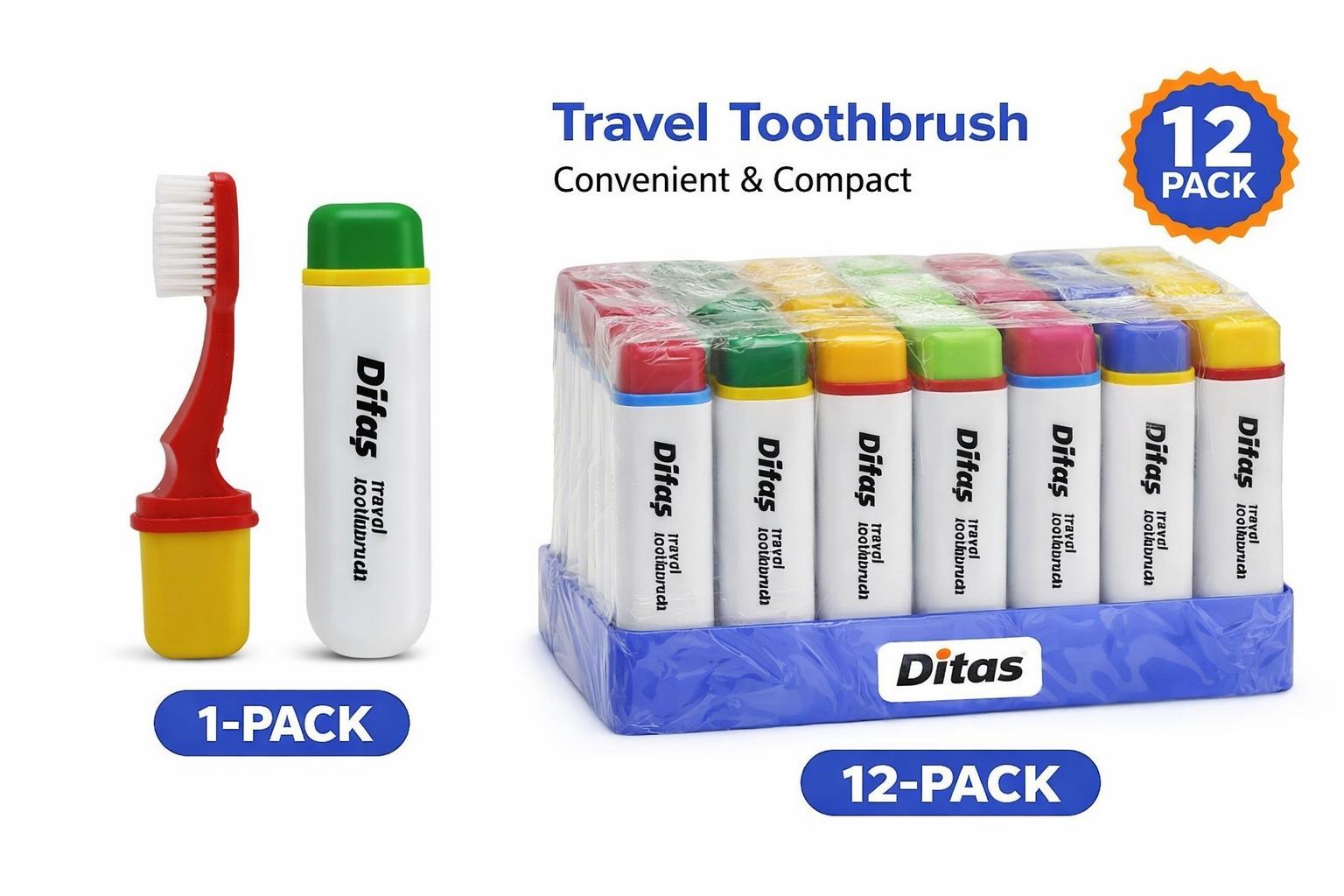 Difas Seyahat Tipi Diş Fırçası ve Diş Macunu Seti | Kapaklı Taşınabilir | 1 Adet ve 24 Adet Paket Seçenekli