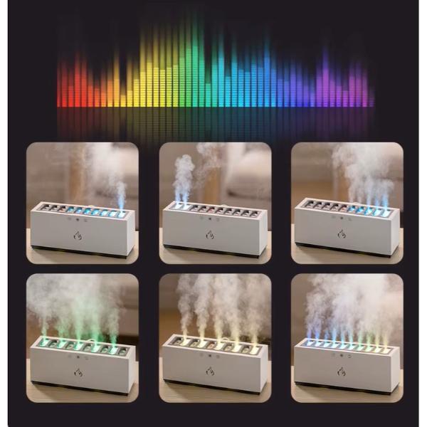 Dinamik tasarımıyla öne çıkan hava nemlendirici 900 ml su kapasitesi sayesinde uzun süreli kullanım imkânı sunar. Üzerinde bulunan 6 adet hava çıkışı güçlü buhar desteği sağlayarak bulunduğunuz ortamdaki nem dengesini korur. RGB ışık fonksiyonu sayesinde ortama modern bir görünüm katar ve müzik ile senkronize şekilde değişen ışıklarıyla eşsiz bir ambiyans oluşturur. Aromatik yağlarla da kullanılabilen cihaz hem şık bir dekoratif ürün hem de sağlıklı bir yaşam alanı için pratik bir çözümdür. Sessiz çalışmasıyla gece ve gündüz her ortamda rahatça kullanılabilir.