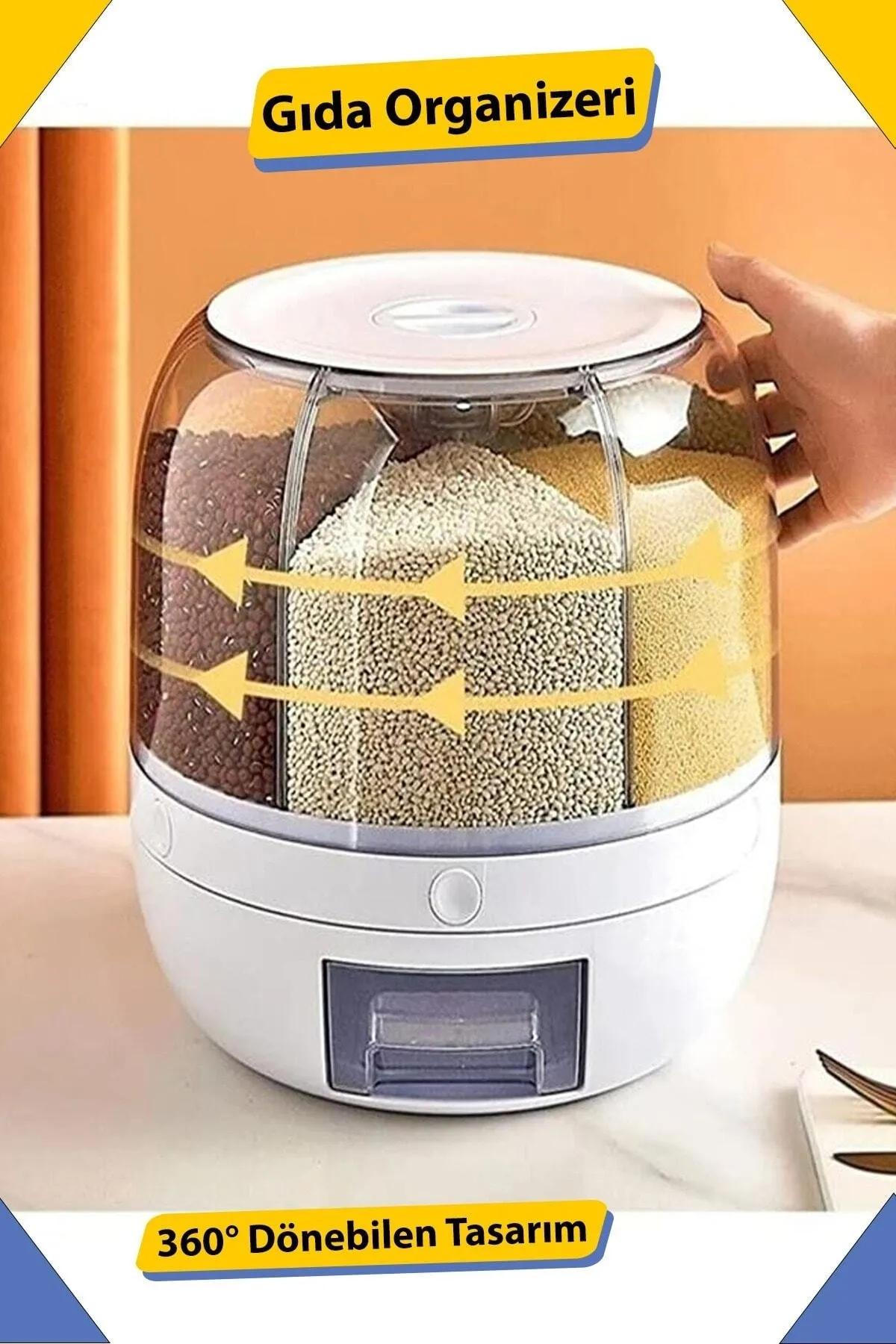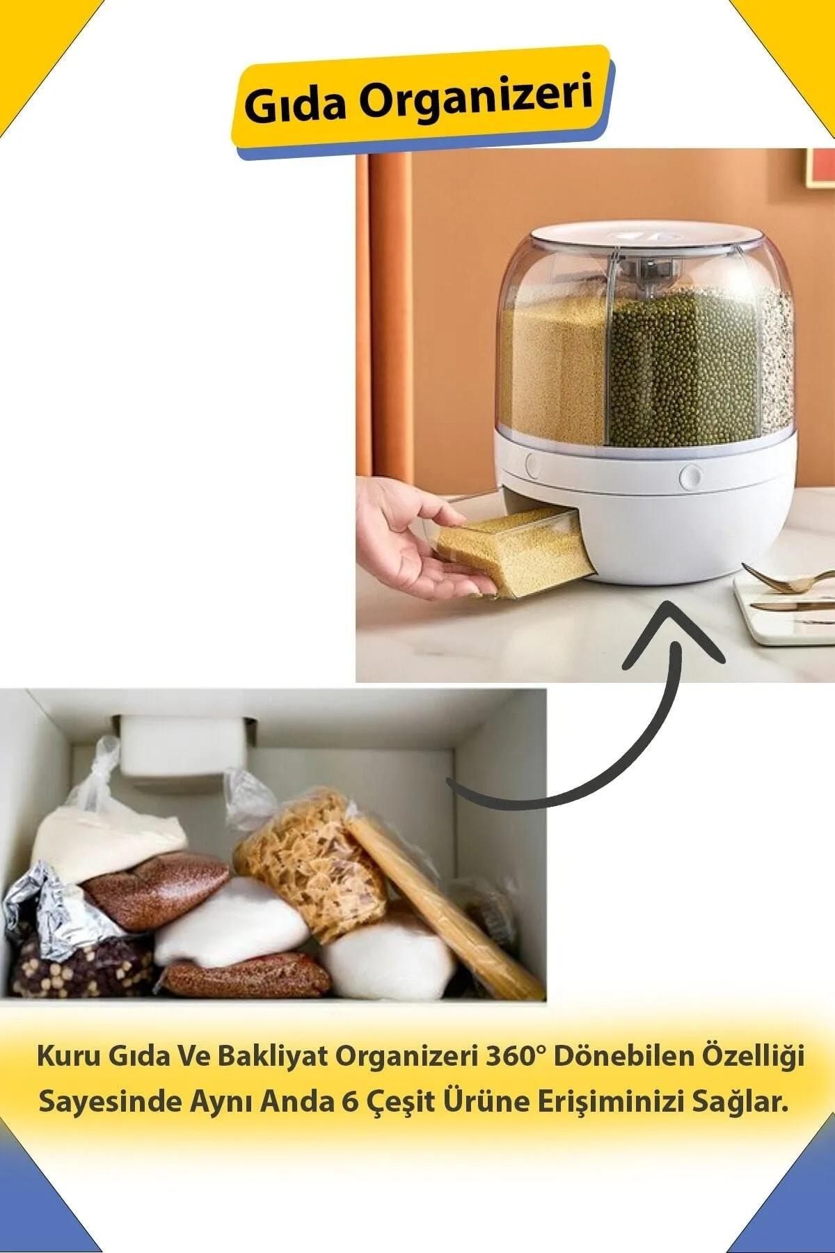 Kuru Gıda Ve Bakliyat Organizeri 360° Dönebilen 6 Bölmeli Hava Geçirmez Saklama Kabı 6 LtKuru Gıda Ve Bakliyat Organizeri 360° Dönebilen 6 Bölmeli Ayrıştırıcılı Hava Geçirmez Saklama Kabı Hava geçirmez kuru depolama sistemi ile silikon mühürlü kolay kilitli kapak.Dayanıklı ve kolay istiflenebilir, çok yer kaplamaz.Bulaşık makinesinde yıkanabilir.360 Derece DönüşErgonomik TasarımPratik KullanımÇıkarılabilir Üst KapakTek Tuş Kullanım24x27 Boyutlara SahiptirToplamda 6 Bölmeye Ve Her Bölme 1 LT Kapasiteye Sahiptir.Düğmeler Hazneyle Eşit Hizalandıktan Sonra Kullanılmalıdır.