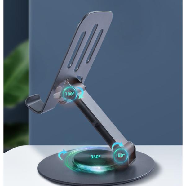 Dönebilir ve katlanabilir masaüstü metal telefon tutucu, sağlam alüminyum alaşımlı yapısı ile uzun süreli kullanım sağlar. 360 derece dönebilir tabanı ve ayarlanabilir açılı tasarımı sayesinde telefonunuzu hem yatay hem dikey konumda sabitleyebilir, film izlerken, görüntülü görüşme yaparken veya çalışırken rahatlıkla kullanabilirsiniz. Kaymaz silikon pedleri cihazınızı çizilmelere karşı korurken, taban kısmındaki denge sağlayıcı yüzey devrilmeyi önler. Katlanabilir yapısı sayesinde kolayca çantanıza sığar ve taşınabilirlik sunar. Modern ve şık tasarımıyla ofis, ev veya seyahatlerde kullanım için idealdir.