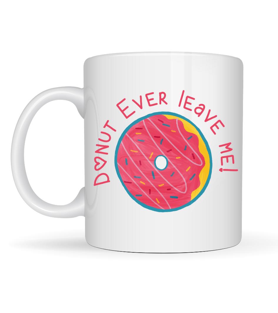 Üzerindeki “Donut Ever Leave Me!” yazısı, İngilizce’de esprili bir şekilde “Beni asla bırakma” anlamına gelir. Donut kelimesiyle yapılan bu tatlı kelime oyunu, sevgi dolu ve eğlenceli bir mesaj verir. ??